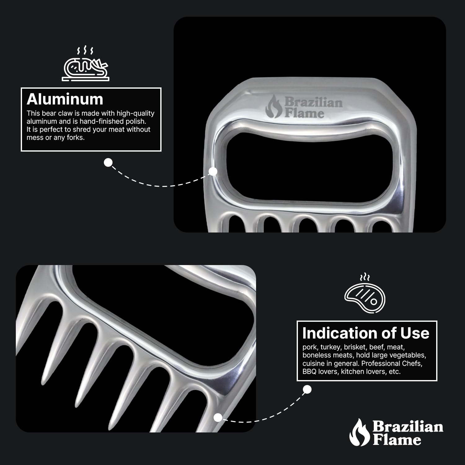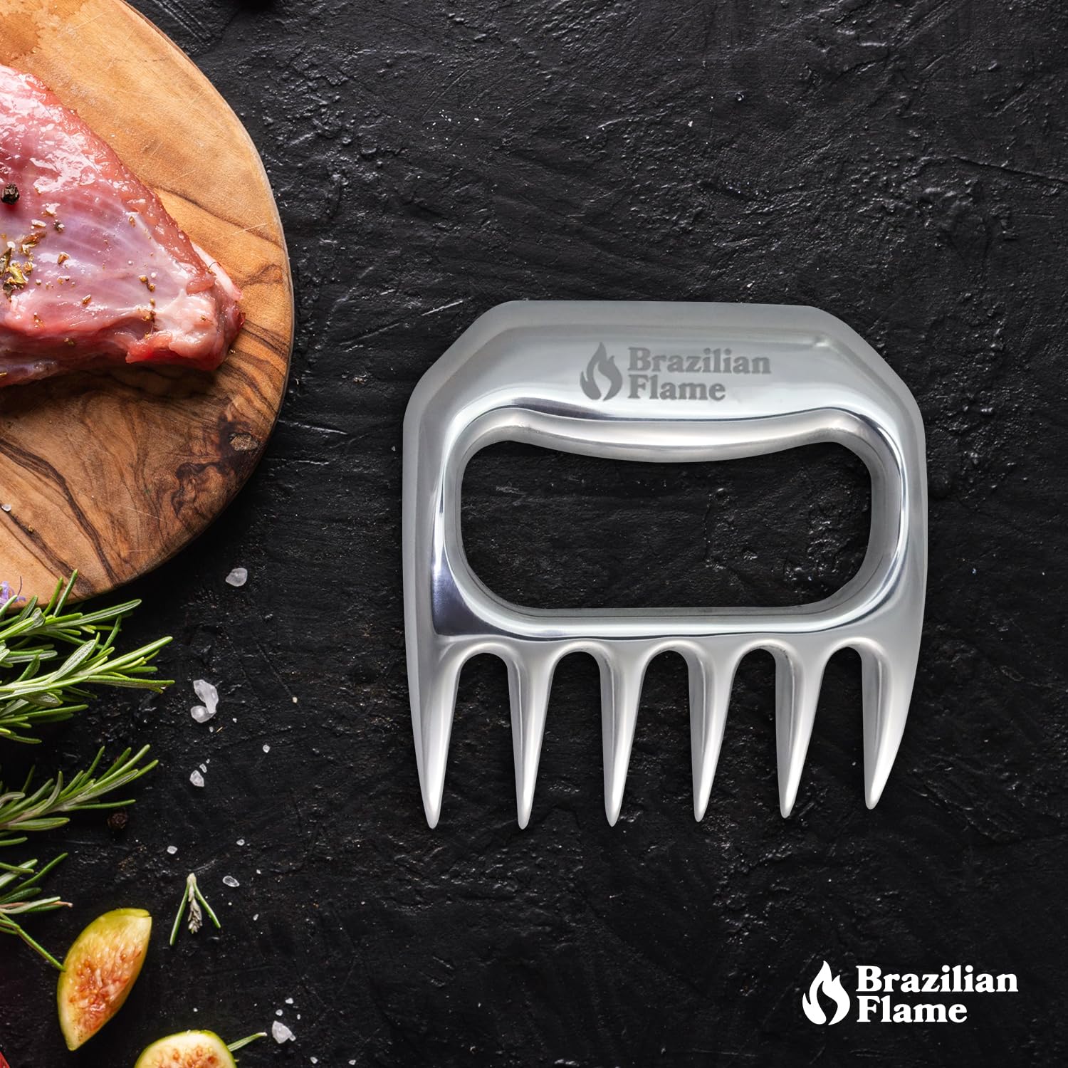 Triturador de carne com garra de urso de chama brasileira feito em alumínio, essencial para profissionais de churrasco, levanta, manuseia, desfia e corta facilmente carnes (KF-REF105)