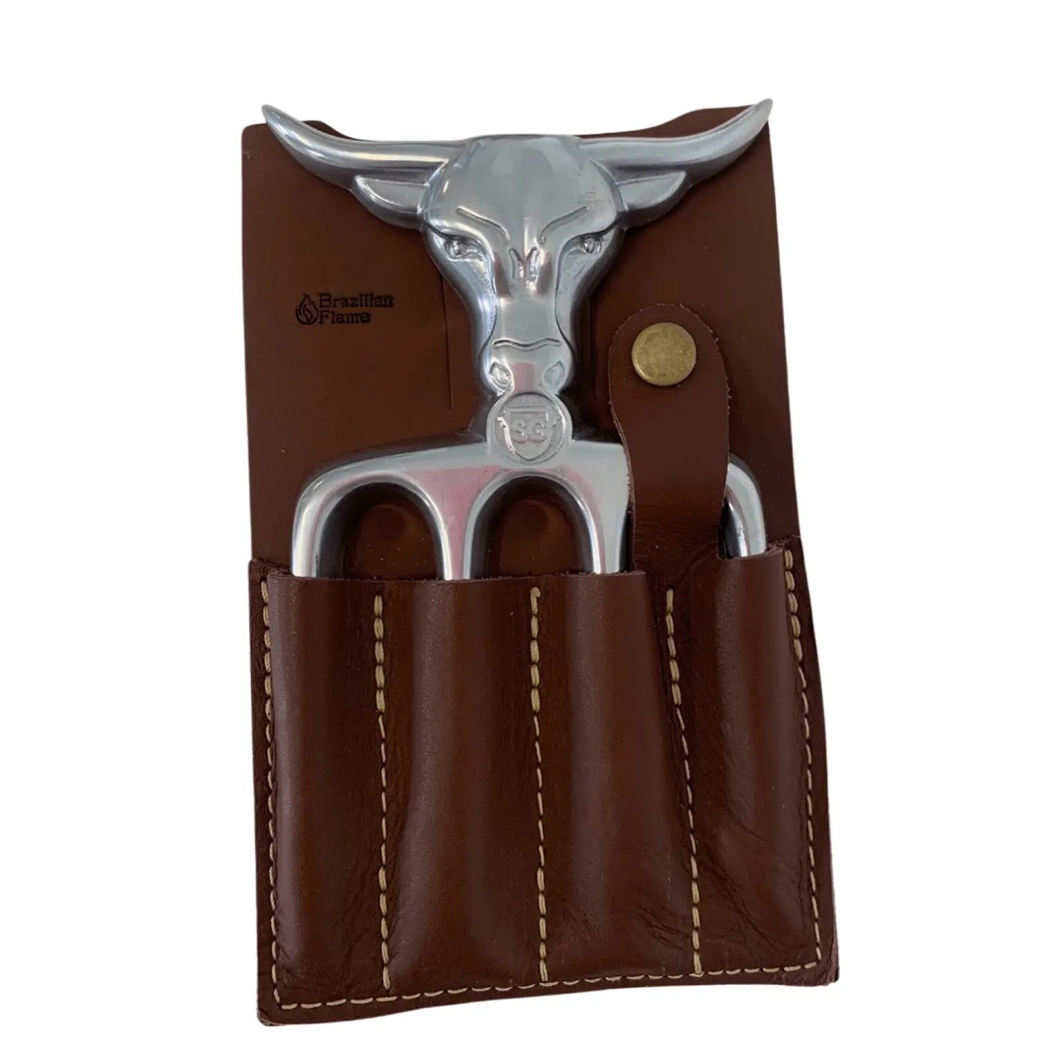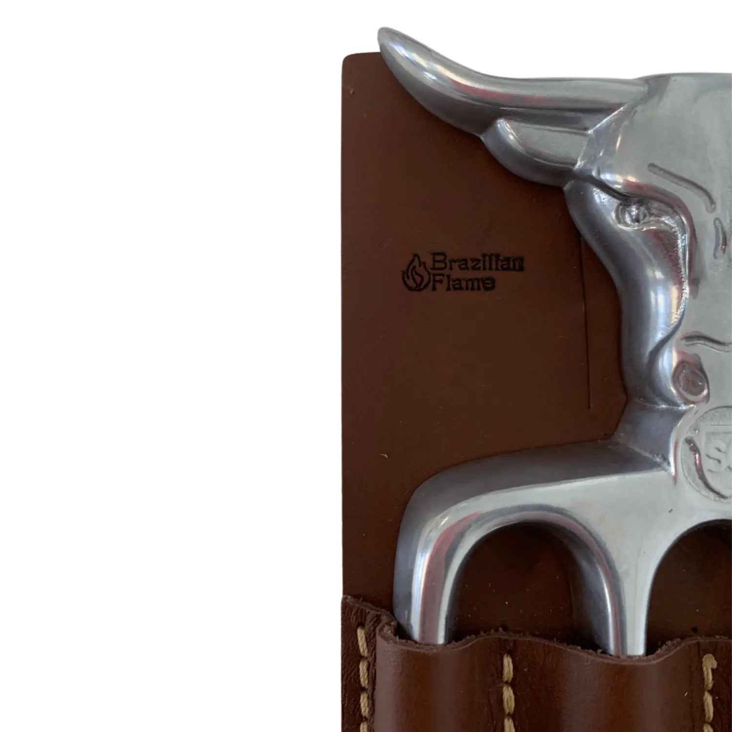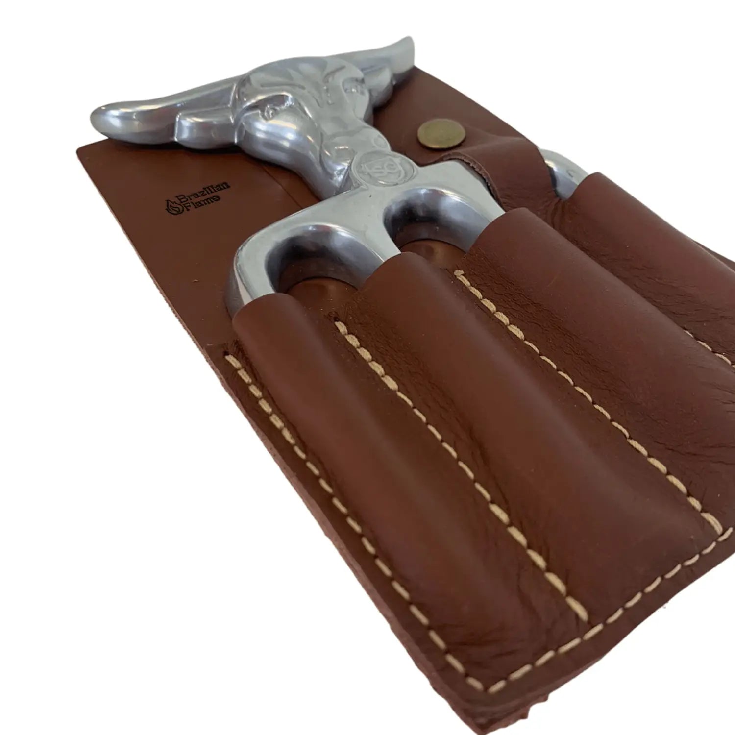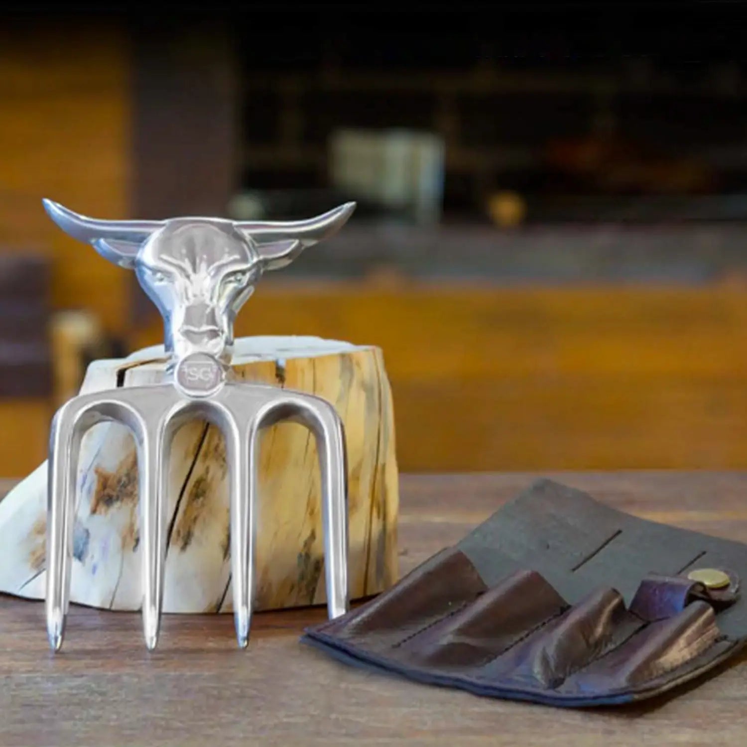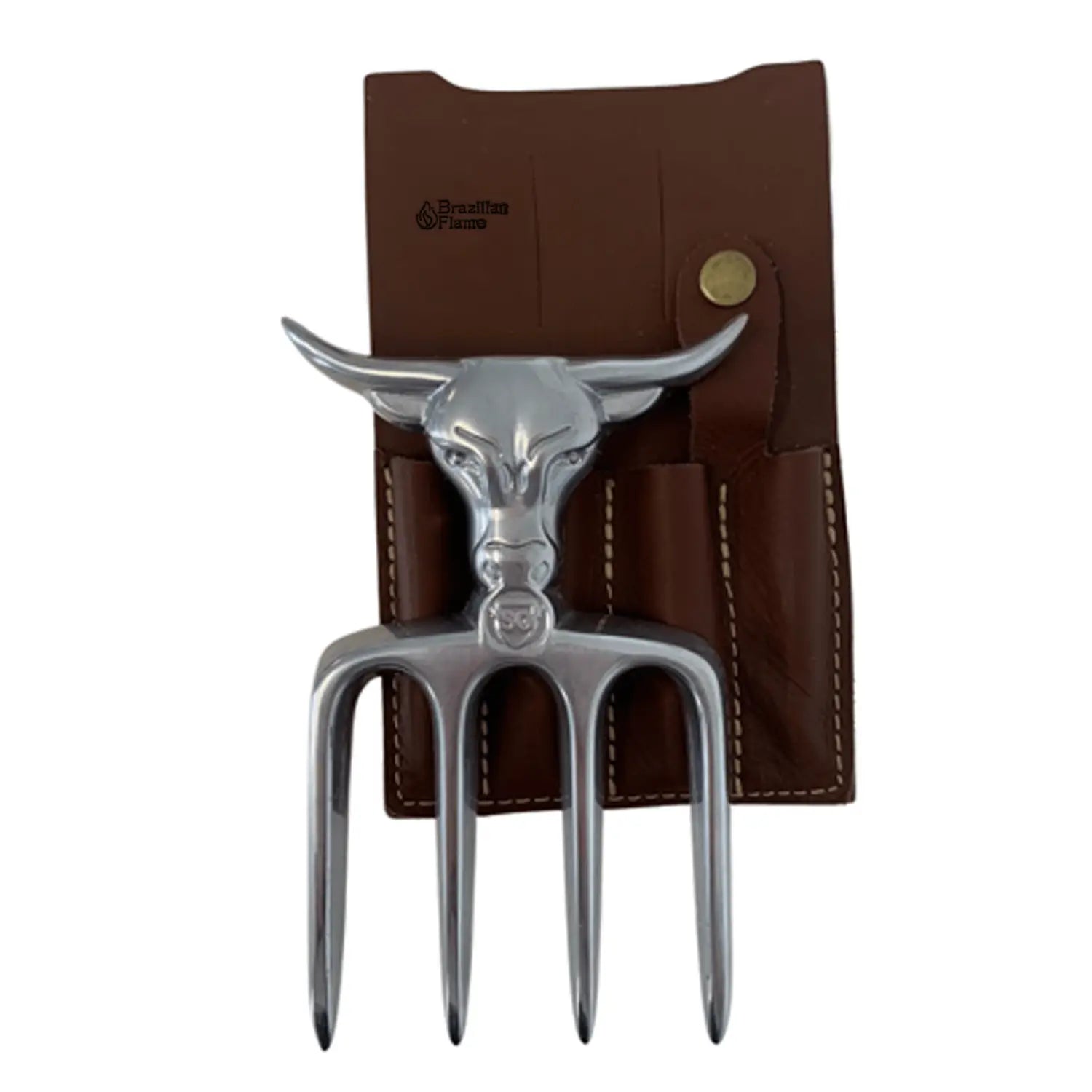 Brazilian Flame Meat Shredder Claw - Bull, 4 Long Teeth Fork - With Leather Sheath