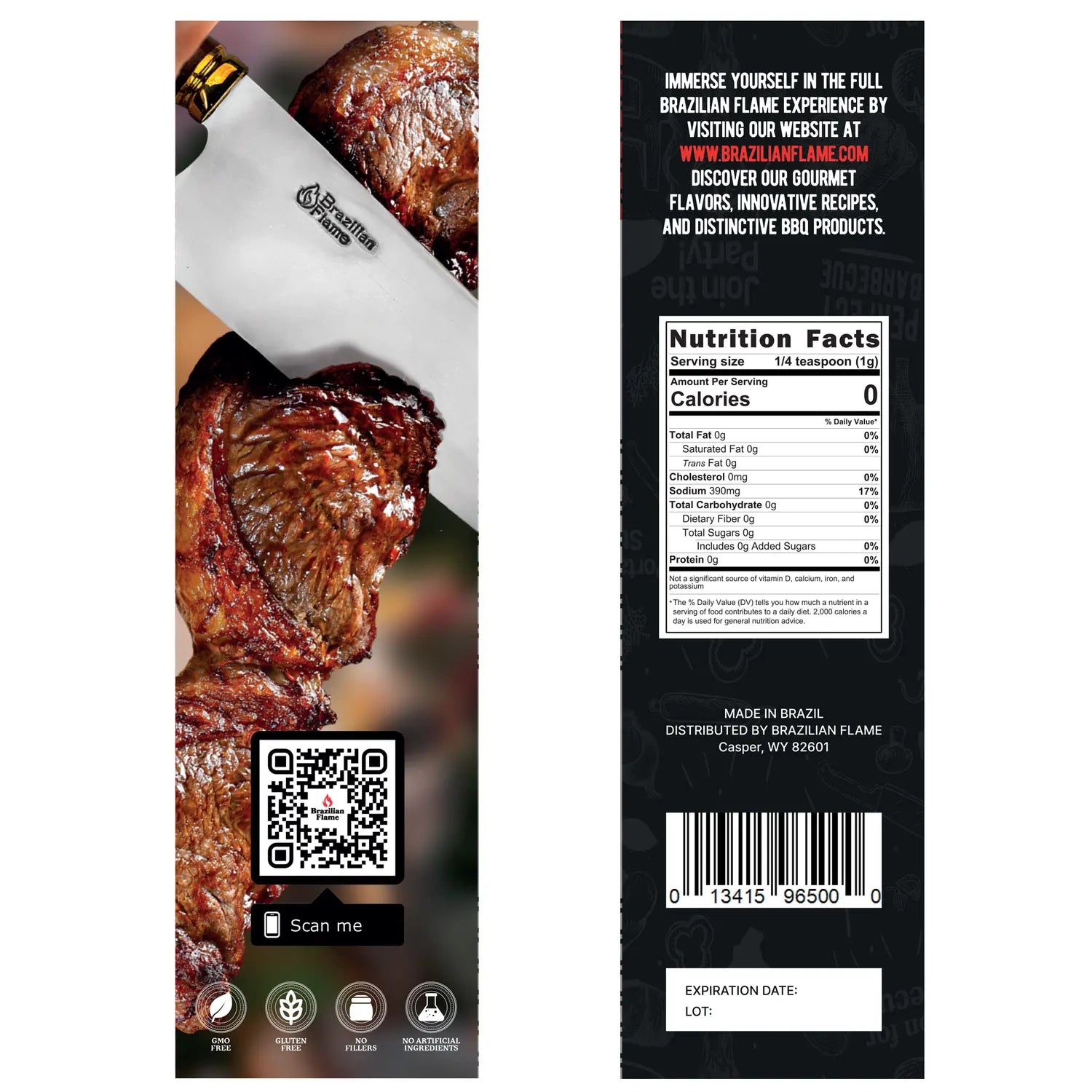 The seasoning boasts a unique blend of hand-harvested sea salt, smoky peppers, and aromatic garlic, replicating the rich and deep flavors synonymous with traditional Brazilian "Churrasco".
