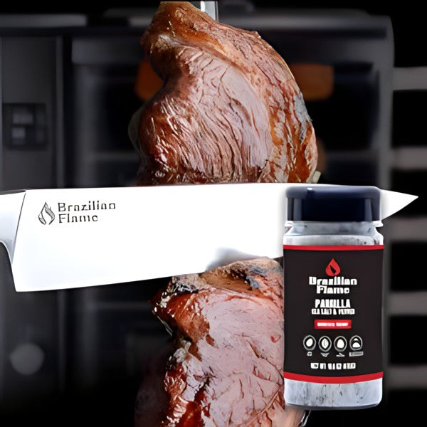 Now, we invite you to bring this iconic taste to your grill with Brazilian Flame Seasoning. Crafted with precision and love, our blend captures the soul of Brazil's culinary heritage. Whether you're grilling a juicy picanha or a tender fraldinha, a sprinkle of our seasoning promises an authentic "Churrasco" experience.
