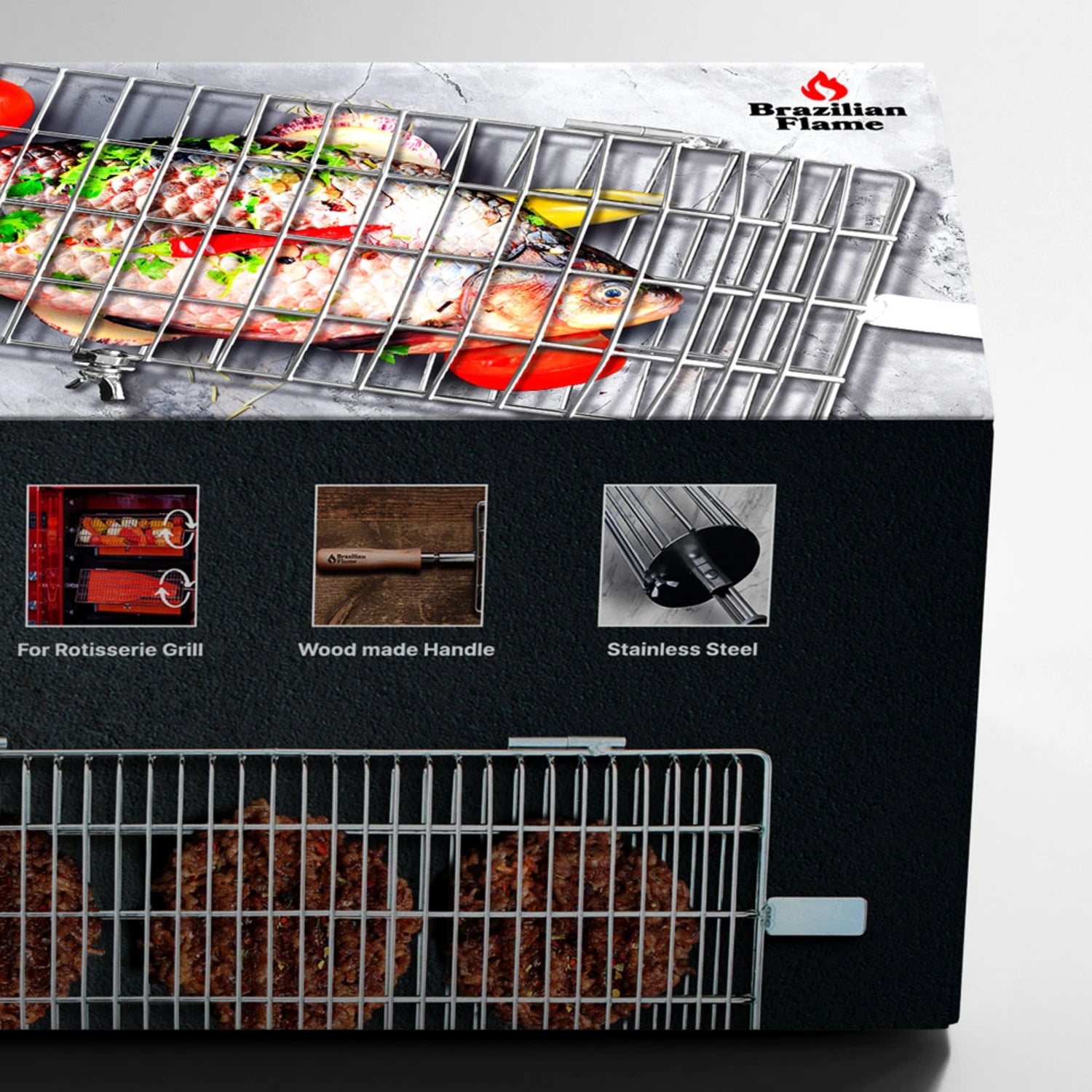 - Set Grill Baskets for all models of your Brazilian Flame Rotisserie Grill.