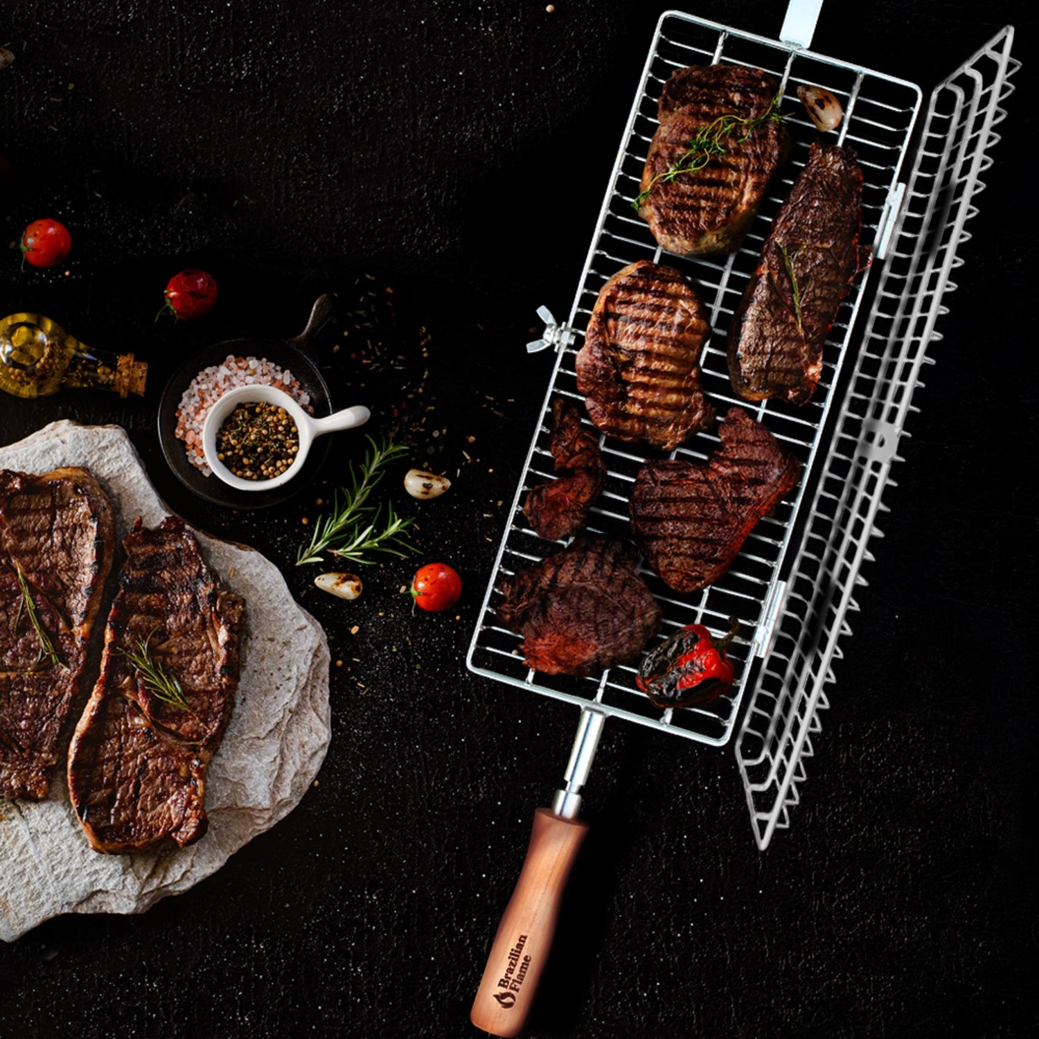 Brazilian Flame KIT GRILL - Conjunto de cestas de grelha para sua churrasqueira a gás Brazilian Flame 3 ou 5 espetos.