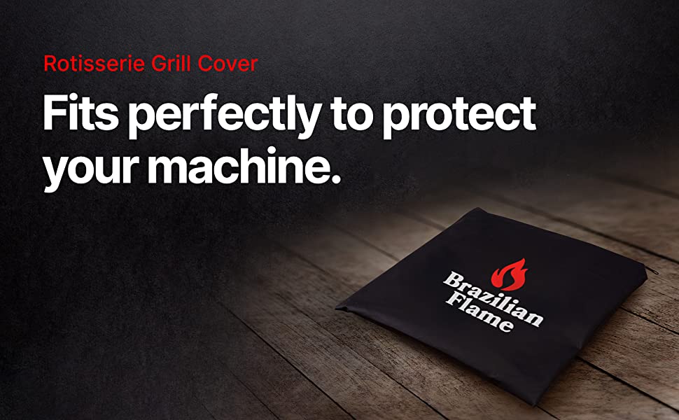 It’s simple to clean. Cleaning your Rotisserie Grill Cover is as simple as spraying it with water and letting it air dry. The Brazilian Flame Cover will complement your grill and safeguard it for years!