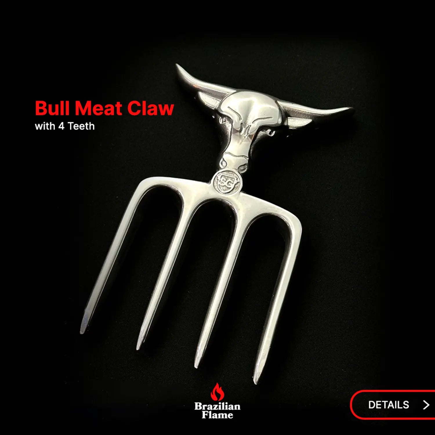- GARRA DE BULL: Esta GARRA DE BULL é feita de alumínio de alta qualidade e polida com acabamento manual. É o melhor acessório para o seu churrasco! Seus dentes permitem maior firmeza e precisão na hora de segurar e cortar a carne, evitando que ela escorregue. É uma ferramenta ideal para todo churrasqueiro! Um excelente presente para um amigo especial, familiar, colega de trabalho.