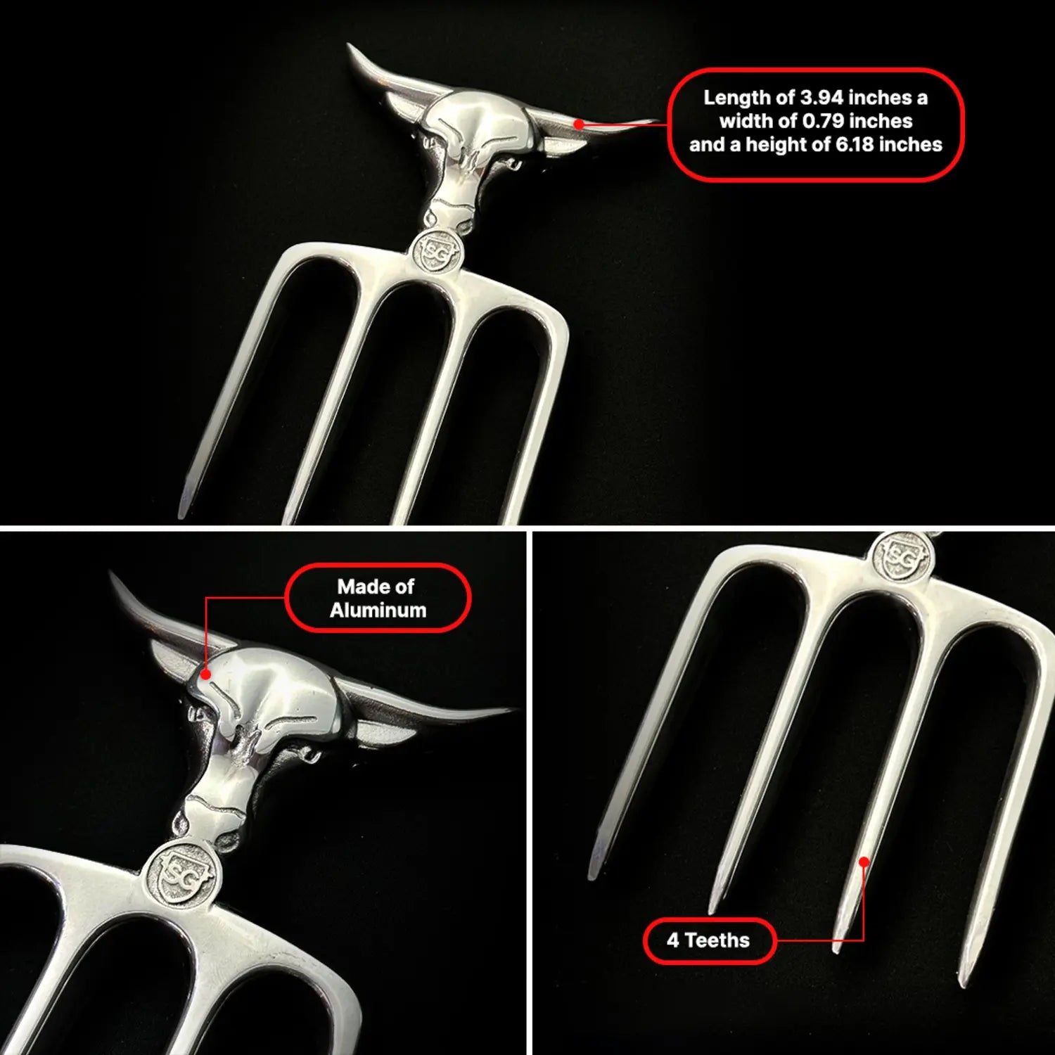 Porta Carne Garra de Touro Chama Brasileira feito em Alumínio, Segurando Carne, essencial para Profissionais de Churrasco, Fácil de Manusear, Segurar e Desfiar Carnes, Garfo de 4 Dentes Longos (KF-REF056)