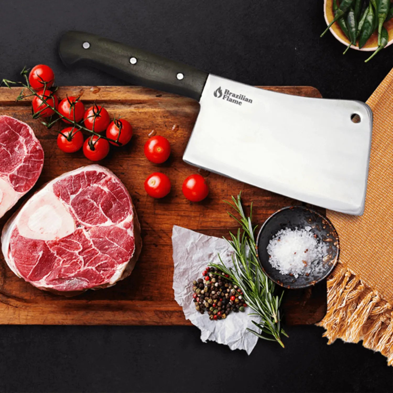 - PROJETO ÚNICO DE JÓIAS: Quer você seja um CHEF DE NÍVEL PROFISSIONAL ou apenas alguém que gosta de mexer na cozinha, um cutelo adequado é essencial. Portanto, a Brazilian Flame está oferecendo a você o melhor e exclusivo cutelo que não só é absolutamente incrível para fatiar, cortar em cubos, limpar carnes e juliana, mas também atraente e durável. Um ótimo cutelo é a melhor forma de preparar sua comida com rapidez e segurança, e vale muito a pena o investimento. ESTAS FACAS CLEAVER TRAZEM UMA DAS MELHORES EXPERIÊNCIAS DE SEMPRE .