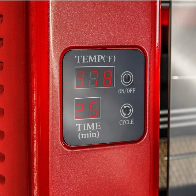 - INDEPENDENT BURNERS & CURVED GLASS: Individually controlled electronic burners on the back and a curved transparent glass door improve visibility and roasting control. The rotisserie are compatible with standard propane tanks as well as one pound of propane via an adaptor on the valve.